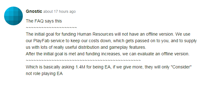 The reality is that PA isn’t successful, BECAUSE it’s unfinished. Not that they are antonyms. If they actually finished the game instead of just “releasing” it, there would be an entirely different attitude towards Uber. That HR is effectively promising to leave out the things many people were most expecting in PA (single-player, no required online access) shows they aren’t listening.